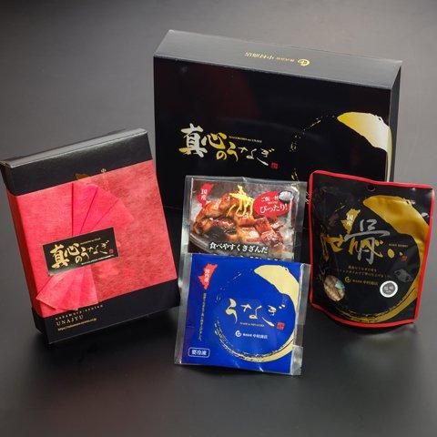【内容量】うな重1個、きざみ1袋、肝焼き1袋、骨せんべい塩味1袋